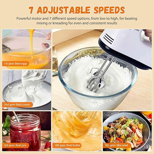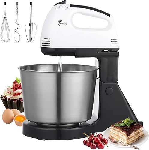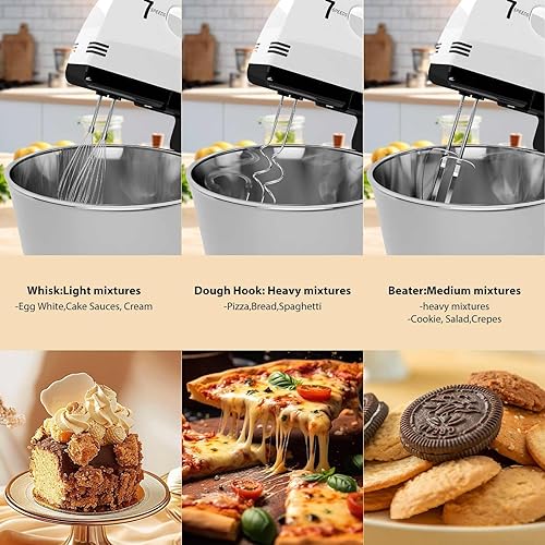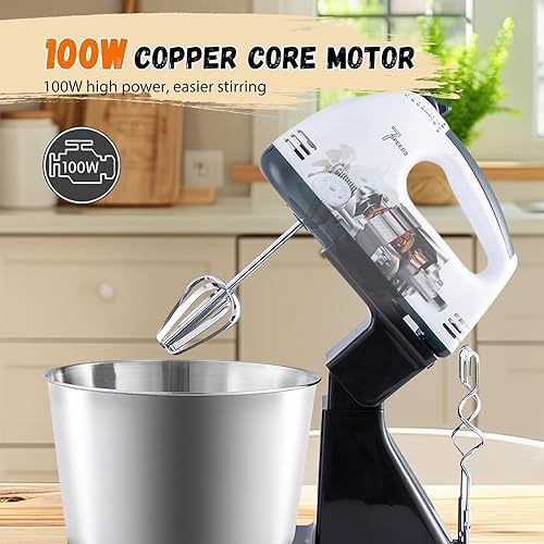 1.7L Robot Patissier, 7 Vitesses RéGlables, 2 En 1 Robot Patissier 100W, Batteur Sur Socle Et à Main, Avec Crochet PéTrisseur, Batteur, Fouet à Fil, Pour PâTisserie Et Boulangerie