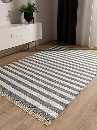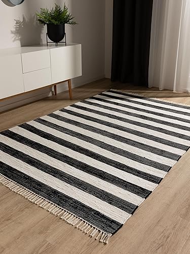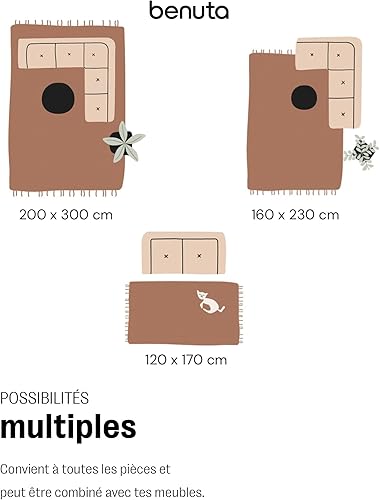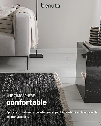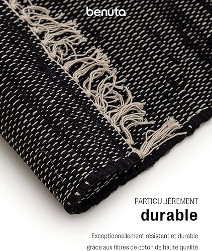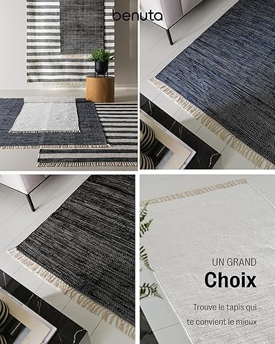 benuta Tom Tapis de salon pop en coton, crème, 60 x 100 cm, tissé à la main, 100 % coton recyclé, adapté au chauffage au sol