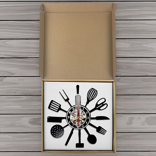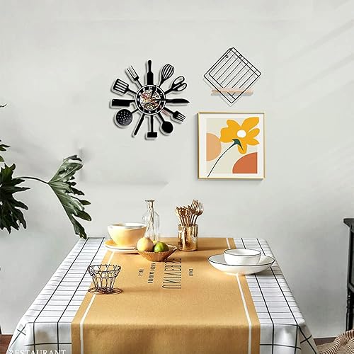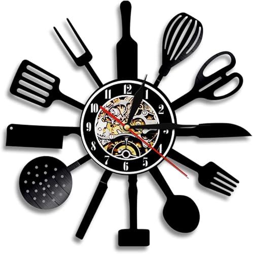 Horloge murale en vinyle, motif ustensiles de cuisine, horloge murale moderne, décoration d'intérieur, fabrication silencieuse, cadeau (sans lumière)