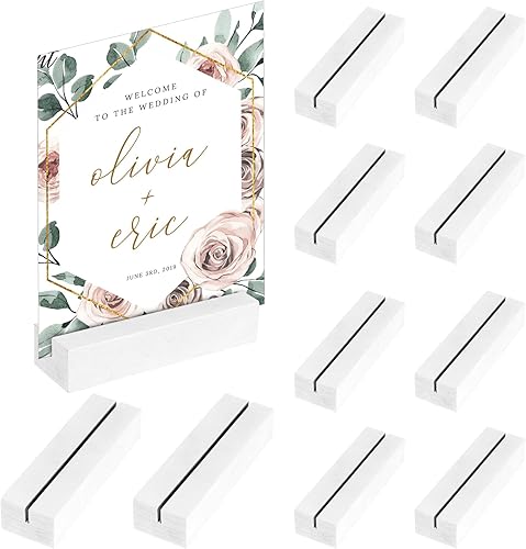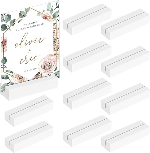 Sprifityy 10 Pièces Porte Carte Bois,porte-cartes en bois de hêtre,porte-cartes photo en bois pour mariages,banquets et fêtes,porte-cartes de menu, porte-photos,porte-cartes postales(Blanc)