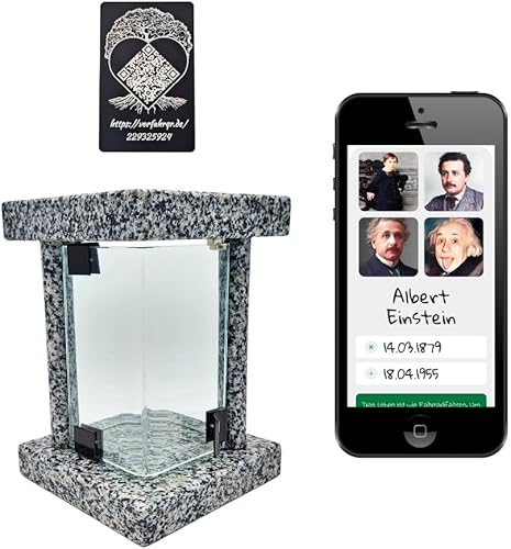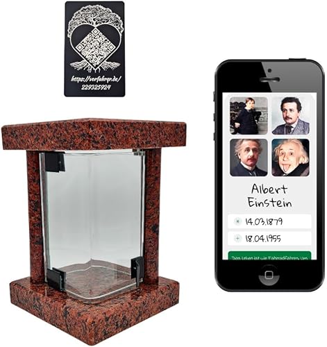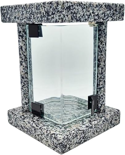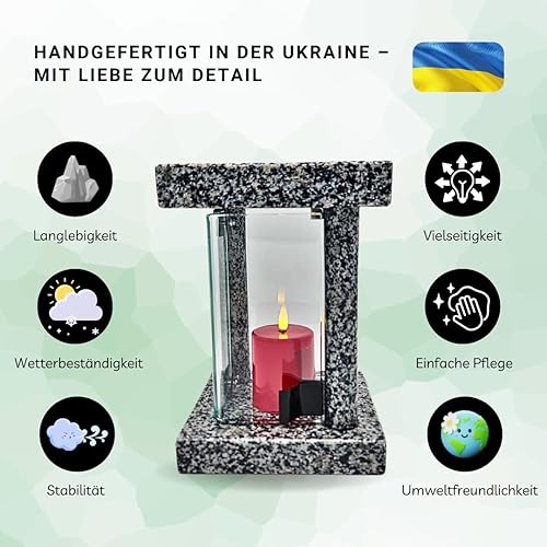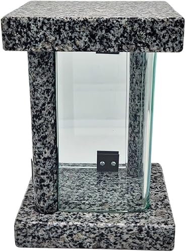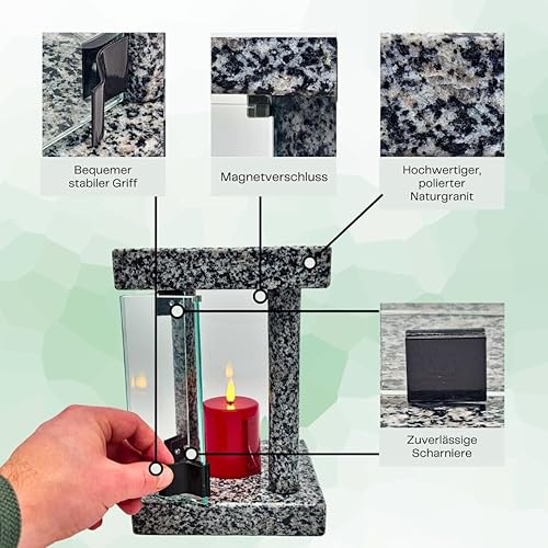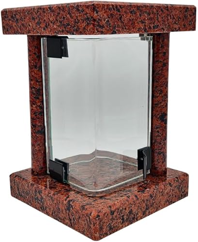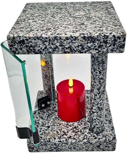 Lanterne funéraire cimetière résistante aux intempéries – Lampe funéraire en granit fabriquée à la main (6 kg), 23 x 16 x 16 cm, pour bougies jusqu'à Ø 8 cm et 16 cm. Noir, gris, rouge. Avec ou sans
