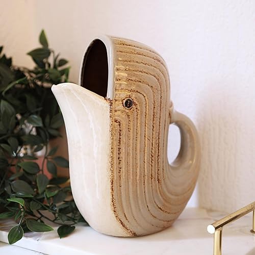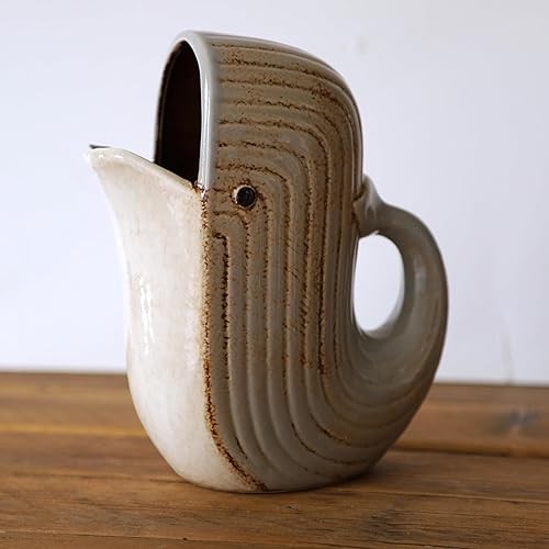 Pichet en céramique avec poignée en forme de baleine 1 litre pour cuisine, vaisselle, table décorative en forme de poisson