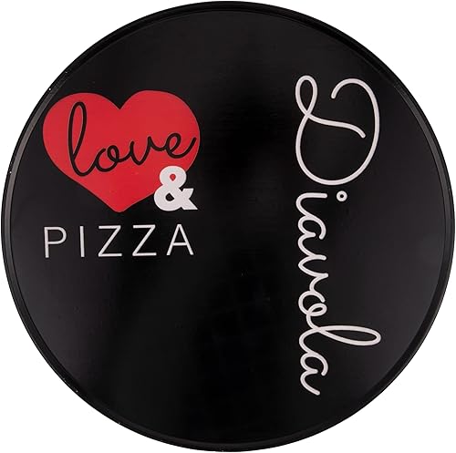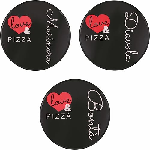 Galileo Lot de 6 assiettes à pizza en grès Ø 33,5 cm, avec inscription noire, Love and