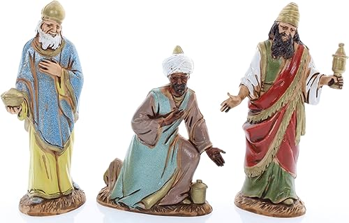 Moranduzzo des 3 Rois Mages pour Crèche de 10 Cm Échelle 1:20Bergers-Figurines de Crèche Indestructibles-Style Arabe,Peinture Finition à la Main,Produit Officiel,Fabriqué en Italie,Sculpteur M. Landi
