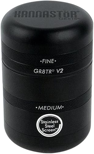 Kannastör GR8TR V2 Grinder – Corps solide avec écran en acier inoxydable facile à changer (Argent mat)