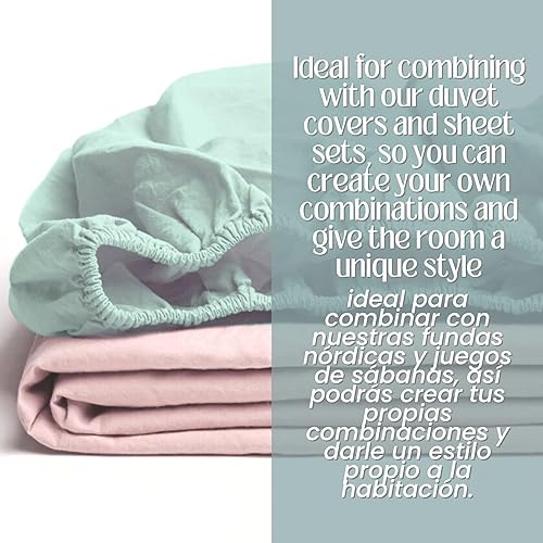 TRAMAS+ Drap-Housse 100% Coton Extra Doux pour lit de 90 cm, Eau de mer
