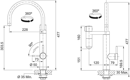FRANKE 120.0551.241 Vital J Robinet de Cuisine avec Filtre à Eau, Noir Mat/Acier Optique