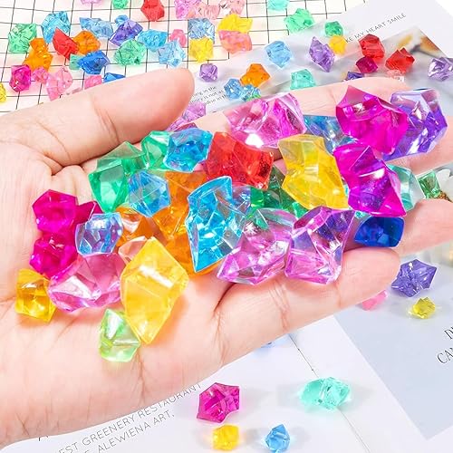 JCUGSBS 200 PCS Acrylique Jouet Plastiques Plongée Pierres Précieuses Enfants Chasse au Trésor Pirate Faux Diamant de Décoration pour Jouet de Piscine,Cotillons,Anniversaires