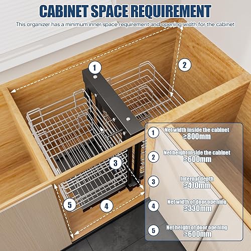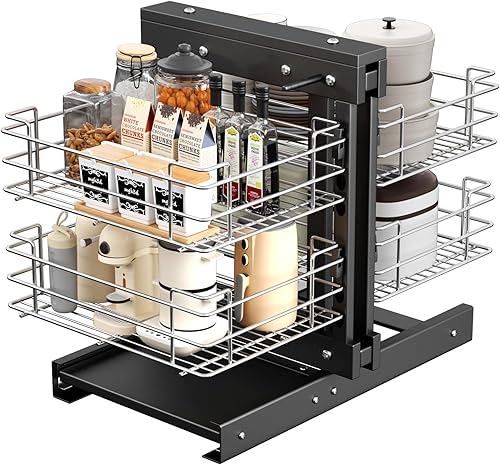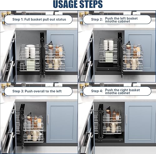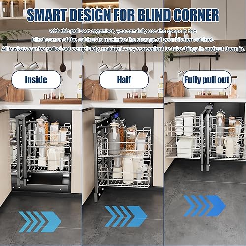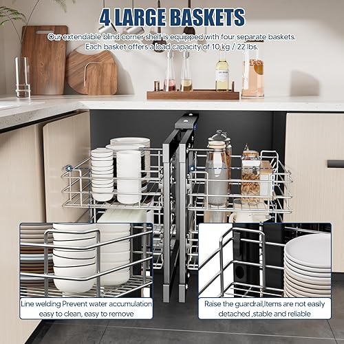 VELPAX Organiseur coulissant d'angle aveugle pour armoire de 800 mm, compatible avec ouverture à gauche et à droite, acier inoxydable Étagère d'angle panier coulissant à 2 niveaux, montage par le bas