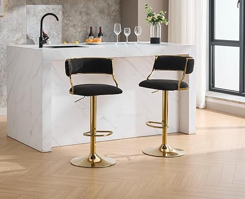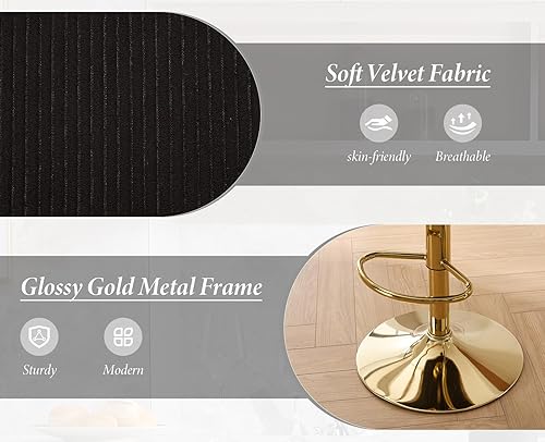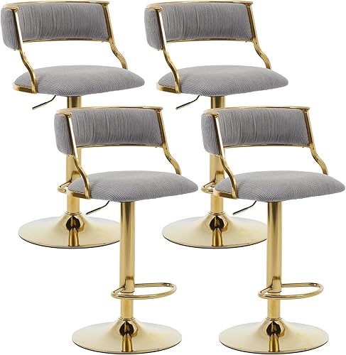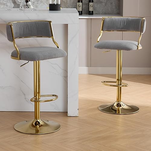 chairus Tabourets de Bar en Velours Lot de 2 Chaises de Bar Dorée Moderne, Chaise Haute Cuisine avec Repos Pied, Gris