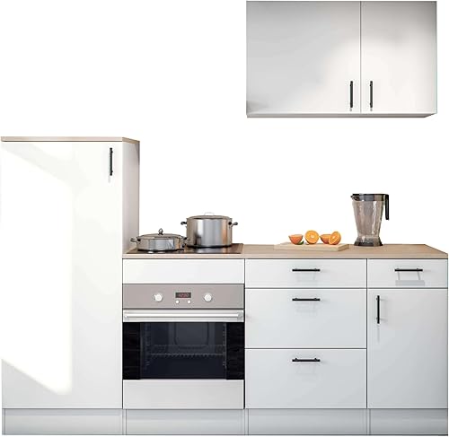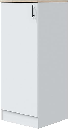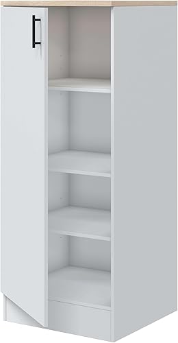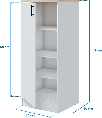 Module inférieur colonne de cuisine Kira avec 1 porte blanc brillant et chêne canadien 3 étagères 60 x 148 x 60 cm mélamine
