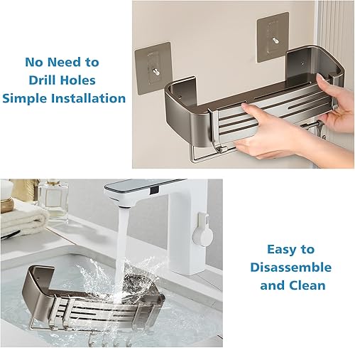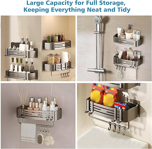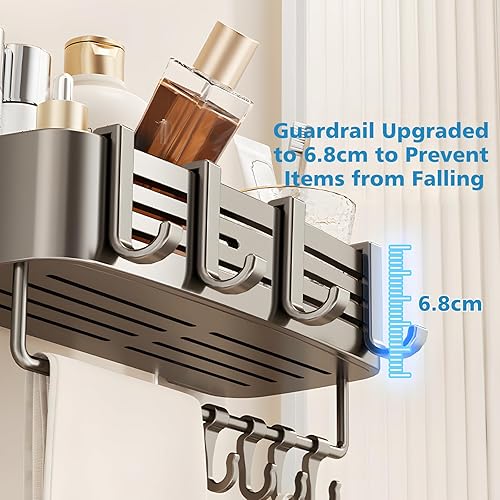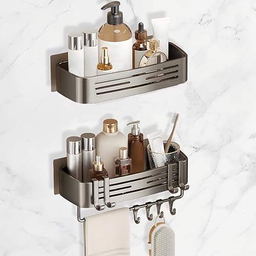 suufrue Etagere Douche sans Percage, 2 pièces etagere salle de bain, Avec 8 crochets et porte-serviettes, grande capacité de charge, Aluminium spatial antirouille étagère salle de bain