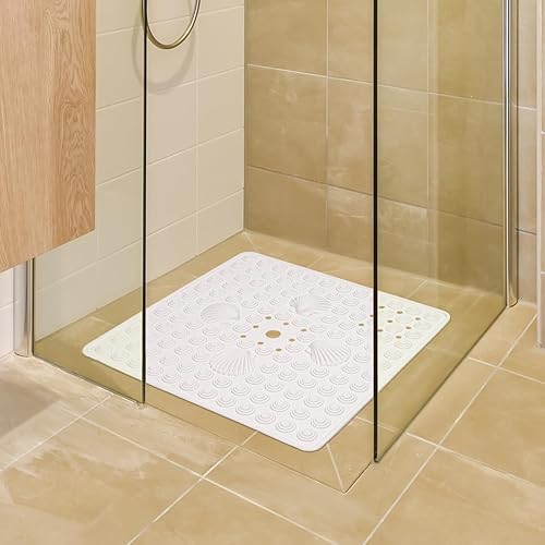 Tatkraft Shell - Tapis de Douche antidérapant, 48 x 48 cm, résistant à la moisissure, Lavable en Machine, Blanc