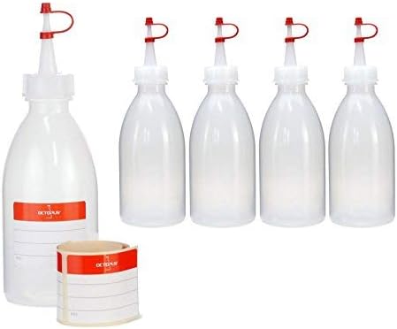 Lot de 5 bouteilles compte-gouttes en polyéthylène basse densité avec bouchon Bouteilles souples pour la cuisine, les loisirs ou le laboratoire, Transparent, 5x 250 ml