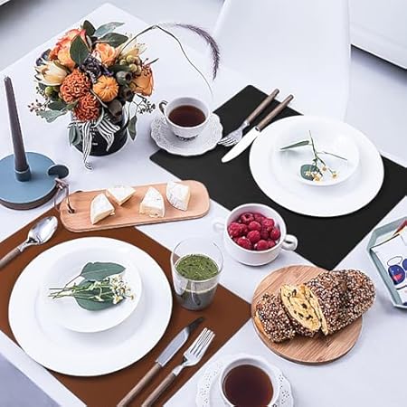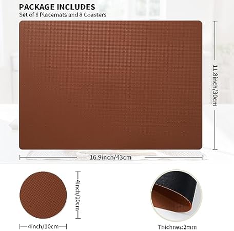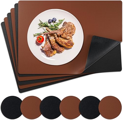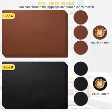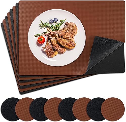 NOSTHEART Set de Table Lavable et Dessous de Verre, Set de Table en Cuir, Sets de Table AntidéRapants et ImperméAbles à Double Face (Gris Beige, Lot de 4)