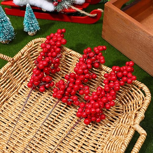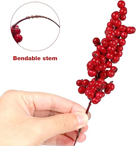 EXCEART Lot de 8 tiges de Baies Rouges artificielles artificielles pour décoration d’Arbre de Noël, Guirlande de Vacances, décoration de Mariage, décoration d’intérieur, Rouge