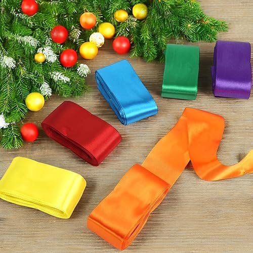 Zyiphor Lot de 6 Rouleaux Ruban Satin Couleur 50mm x 22m Ruban Cadeau Emballage Large Rubans Tissu Coloré pour Couture, Nœuds, Artisanat, Bouquet, Décoration de Mariage, Voitures, Anniversaire, Gâteau