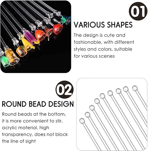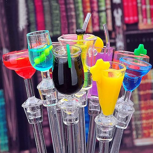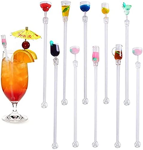 Lot de 10 agitateurs de boissons tropicaux en acrylique pour cocktail avec accessoire miniature coloré