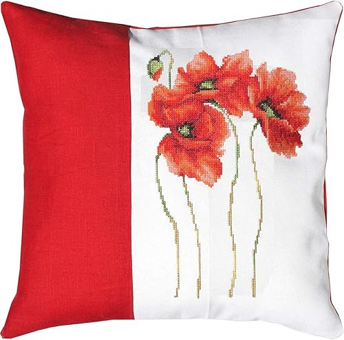 Lucas-S Trois Coquelicots Split Coussin kit de Broderie au Point de Croix, 100% Coton, Multicolore