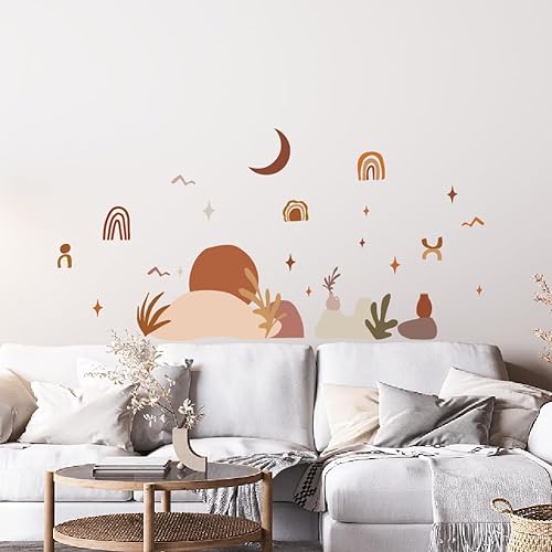 SUPERDANT Stickers Muraux Bohème avec Arche Florale Plantes Sticker Mural Décoration Murale Botanique Blocs de Couleurs Abstrait Géométrique Décoration Murale Amovible Autocollants Décoratifs