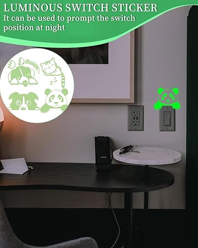 TPZORJX 4 Pièces Autocollants Lumineux - Autocollants pour Interrupteur Mural Interrupteur Lumineux Chat Chien Autocollants Lumineux PVC Stickers Muraux pour Enfants et Adultes, Chambre d'Enfant