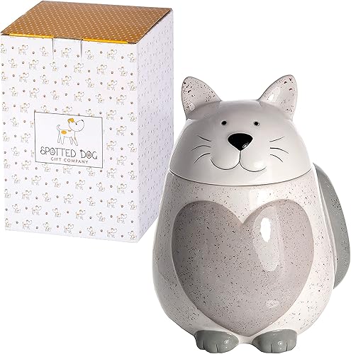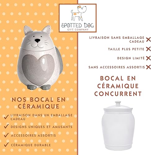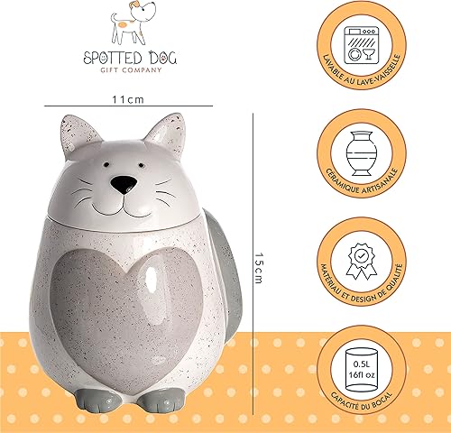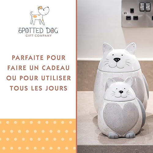 SPOTTED DOG GIFT COMPANY Boîte de Rangement Cuisine, Céramique Bocal de Conservation Alimentaires pour Café Thé Sucre ou Friandises, Cadeau pour les Amoureux des Chats, Blanc 500ml