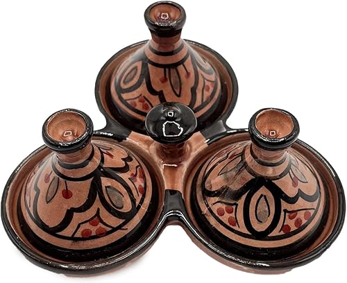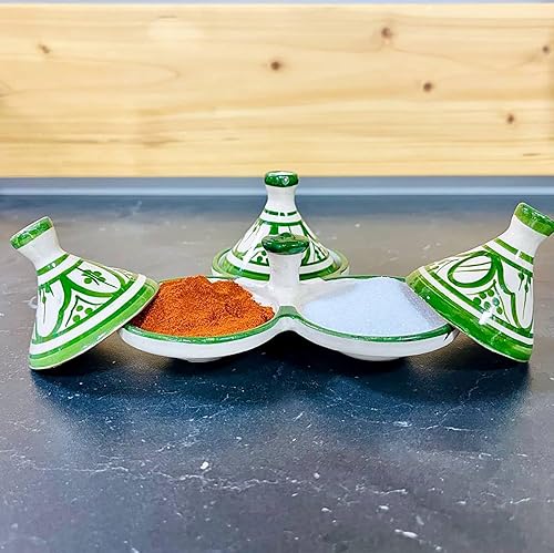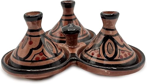 Mini Tajine Triple Porte Épices en Céramique Terre cuite Marocaine de Safi - Élégance Artisanale 0811241509 Tunisie Turquie Ethnique Modno