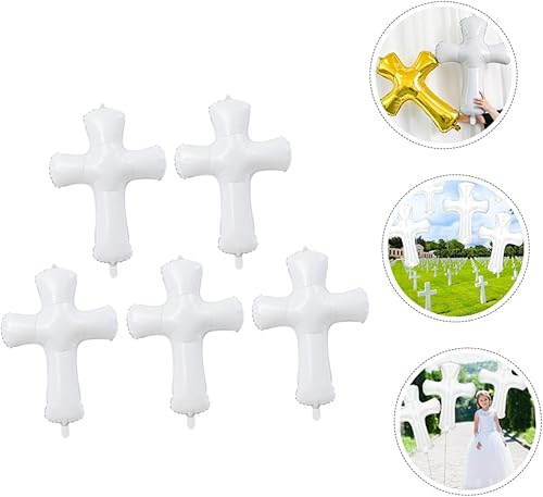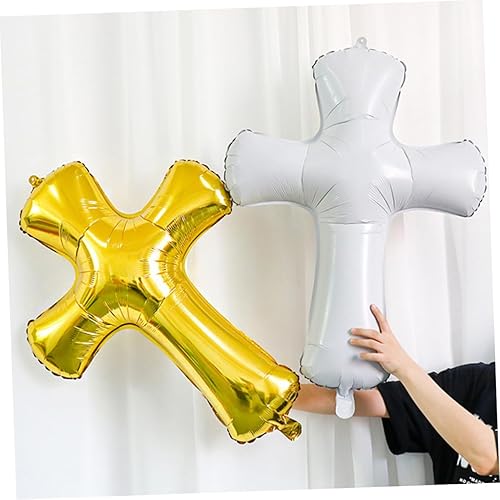 MUCKLILY Lot De 5 Ballons Décoratifs En Aluminium Dorés En Forme De Croix Commémorative Pour Mariage Baptême Shower