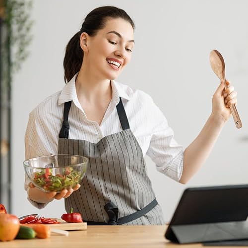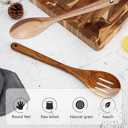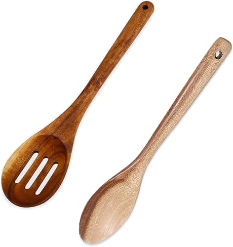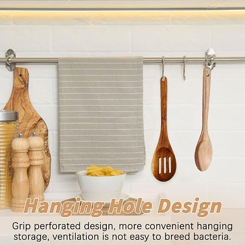 Kytpyi Cuillere en Bois, Ustensiles de Cuisine Bois, 2 Pièces Cuillere Résistant à la Chaleur Antiadhésif avec Trou de Suspension, Poignée Étendue Cuillere en Bois de Cuisine pour Cuisson Mélange