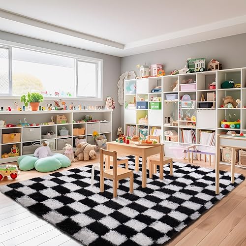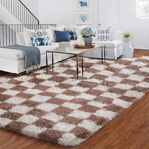 BYBSRLL Grand tapis à carreaux pour chambre à coucher, salon, chambre d'enfant, dortoir, salon - Vert olive et blanc - 150 x 210 cm