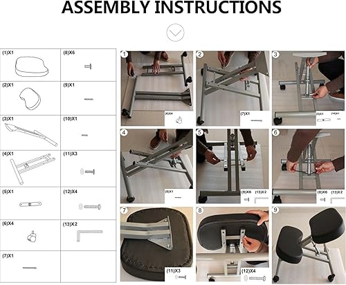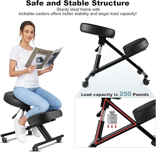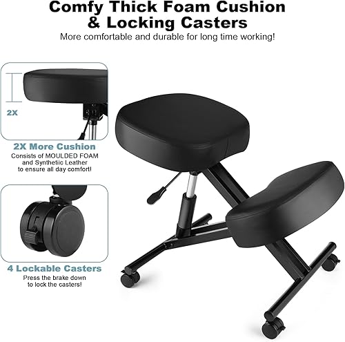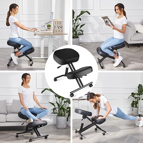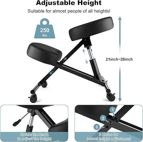 COOCHEER Chaise à Genoux, Métal, Noir, hydraulique