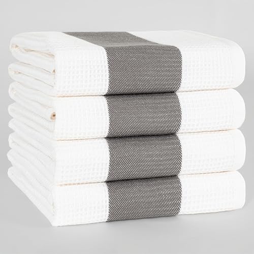 Hammetex Lot de 4 torchons 100 % coton gaufré - 50 x 70 cm - Doux, absorbants et à séchage rapide - Certifié Oeko-Tex - Gris