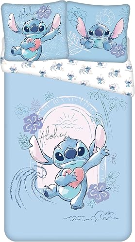 Jerry Fabrics Parure de Lit Stitch Wave 100% Coton, Housse de Couette Réversible 140x200 cm + Taie d'oreiller 65x65 cm