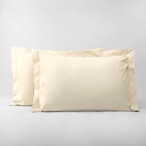 LINANDELLE - Lot de 2 taies d'oreillers Percale 200 Fils Desiree - Blanc - Rectangles 50x70