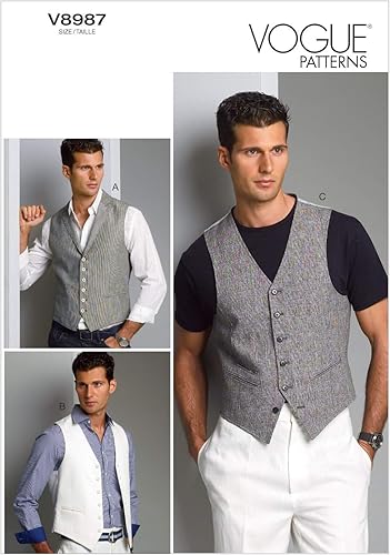Vogue Patterns V8987 Muu 34/36/38/40 Gilet pour Homme Multicolore