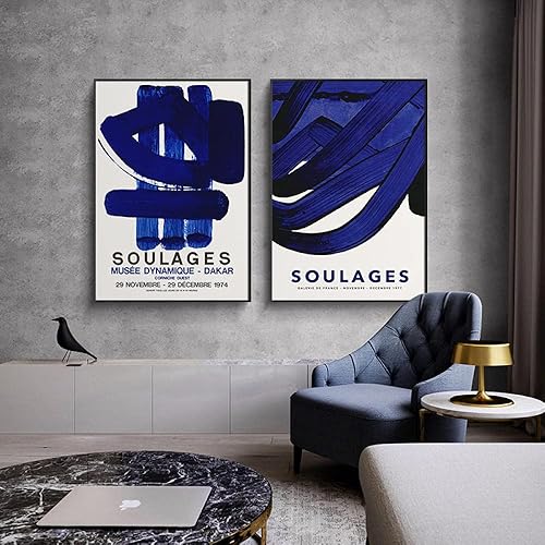 Impressions d'art mural, peinture sur toile Exposition du musée Pierre Soulages Affiche et galerie d'impression Art mural Images abstraites pour le salon Décoration d'intérieur/30x50cmx2 sans cadre