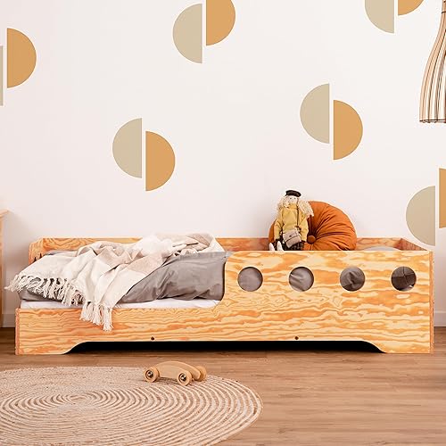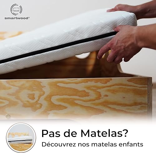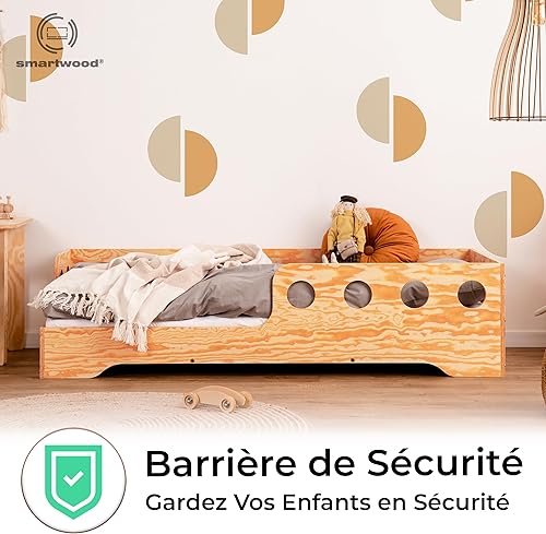 smartwood Lit Enfant 120x190 avec Sommier | Laqué | Montessori Lit au Sol TILA 5L avec Barrière de Sécurité | Bois Naturel Certifié | Recommandé à partir de 3 Ans