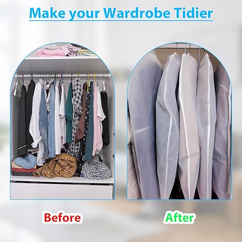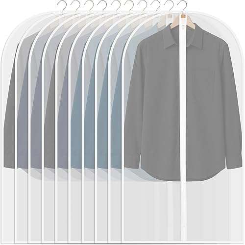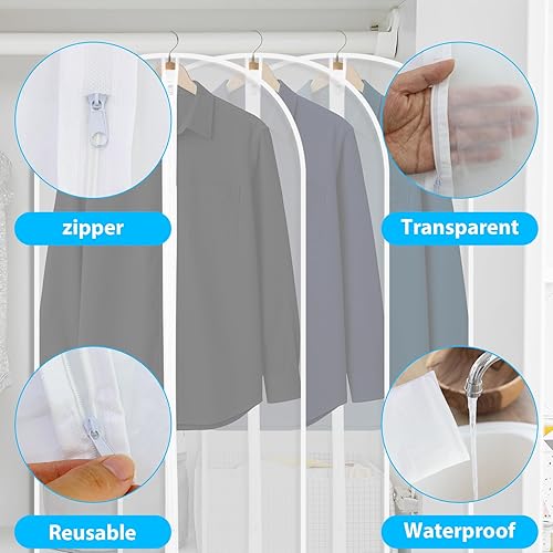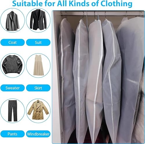 10 Housses de Vêtements, 60x100cm, Semi Transparents Housse Vetements à Suspendre avec Zip, Anti Poussière Etanche Mite Humidité, Housse Vetement Penderie pour Costumes, Robes, Vestes, Chemises