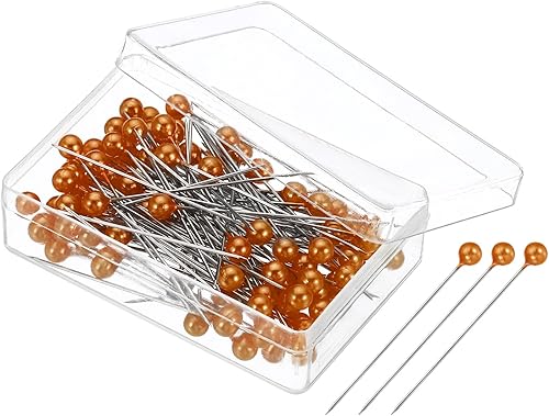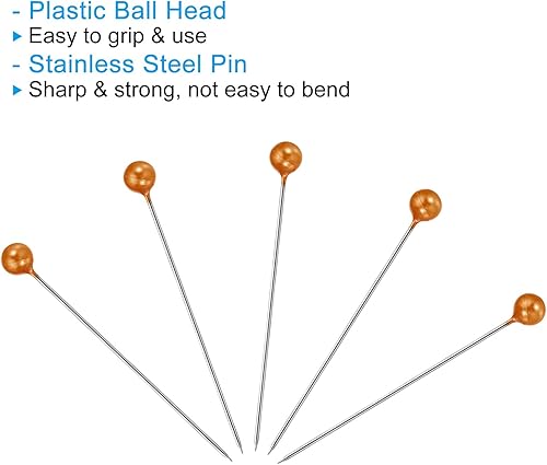 PATIKIL Couture Épingles, 100 pcs 1.5 Pouce Droit Épingle avec Plastique Perlé Boule Tête pour Tissu, Décoratif, Bijoux DIY, Artisanat et Couture Projet, Orange