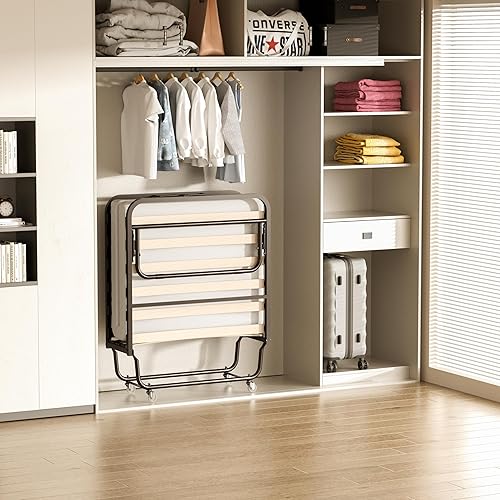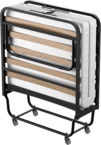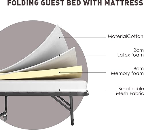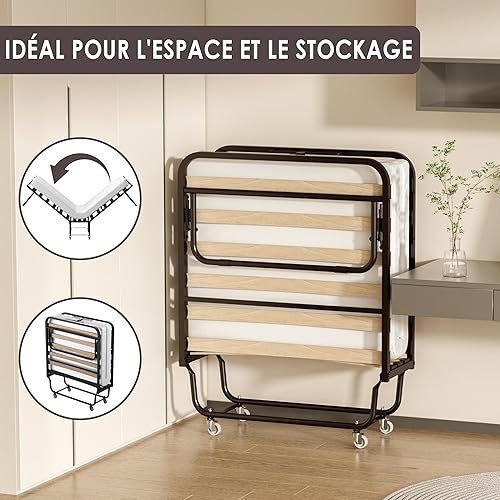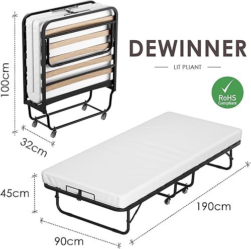 DEWINNER Lit Pliant 80x190 cm avec Matelas de 10cm, Lit Pliable 1 Personne Adulte pour Cadre de lit en sommier 80x190,4 roulettes,Facile à Transporter et 2 Min Assembler (80 x 190 cm)