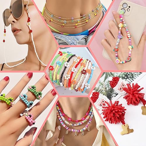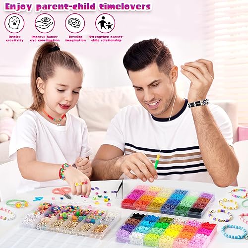 Mactoou 12000+ Pièces Perles pour Bracelet, 24 Couleurs 6 mm Perles Plates, 3mm Perles de Rocaille avec Lettres beads pour Bijoux Adulte Fille Enfant