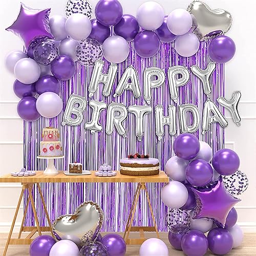 Ballon Anniversaire Fille Violet, Décoration Fête, Étoile et Coeur Ballons, Guirlande Happy Birthday pour Filles Femme