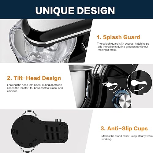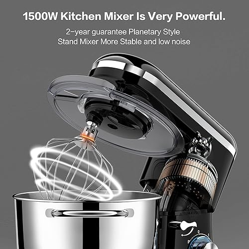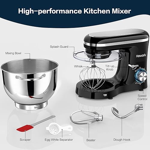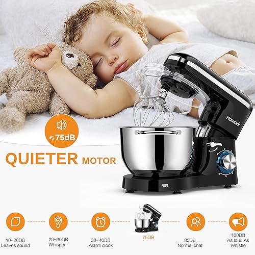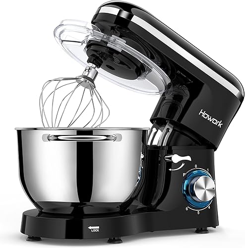 HOWORK Robot Pâtissier 1500W, 6 Vitesses Robot pétrin multifonction avec Bol 6.2L, Batteur, Fouet, Crochet, Robot de cuisine (6.2 L, noir)