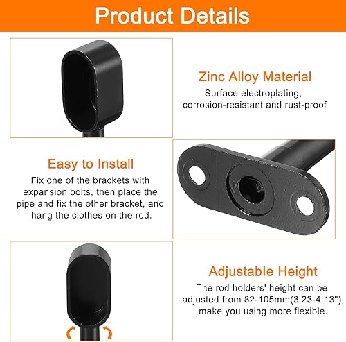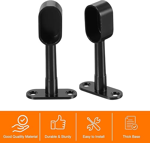 QUARKZMAN 2Pcs 1.26 x 0.63' Support de Barre de Penderie, Support de Tringle à Vêtements Accessoires de Garde-Robe pour Chambre Salle de Bain, Noir