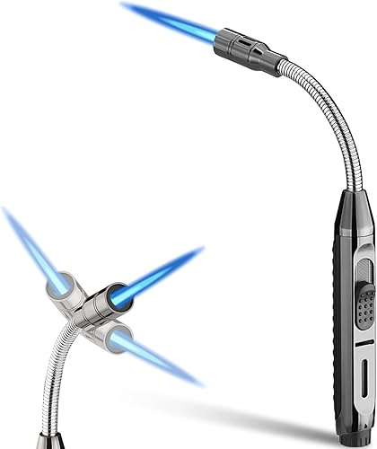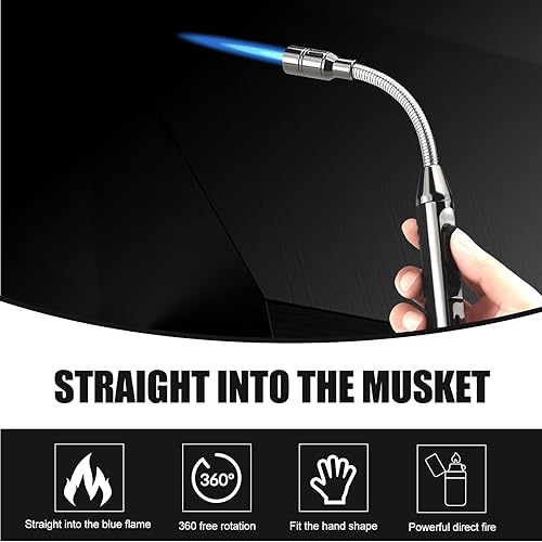 Briquet rechargeable au gaz - Briquet tempête - Longue tige - Flexible - 360° - Coupe-vent - Flexible - Pour cheminée, bougies, four, cuisine, camping - Sans gaz