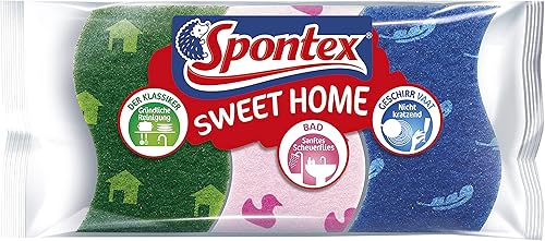 Spontex Sweet Home éponge Kit pour toute la maison, 1 x, Salle de bains et cuisine universel, 3 éponges