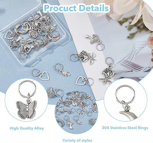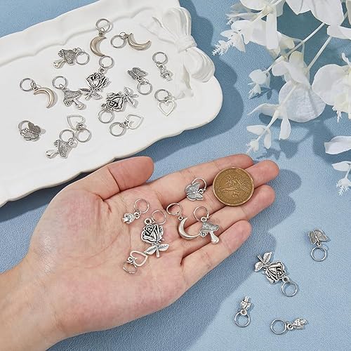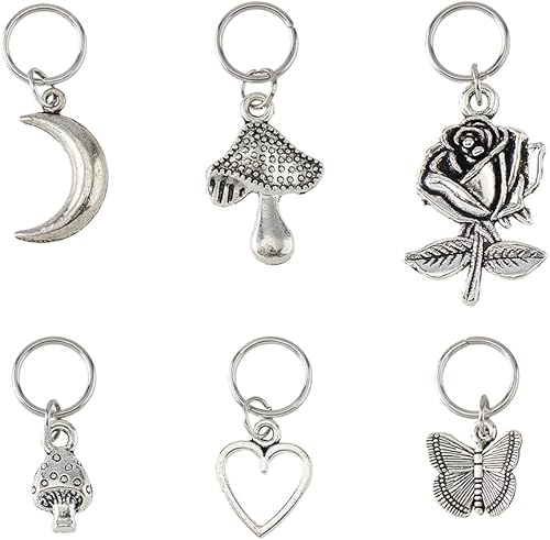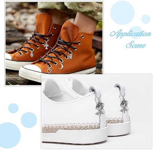 Hobbspring 24 pièce 6 styles de Breloques de Chaussures en Alliage Pendentif de Chaussure Fleur Cœur Champignon Lune Papillon Pendentifs de Bottes Breloques de Style Tibétain avec Anneaux de Jonction