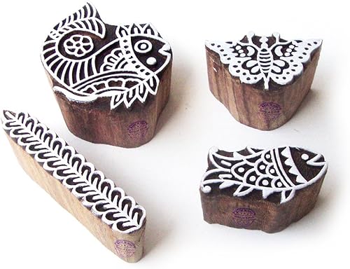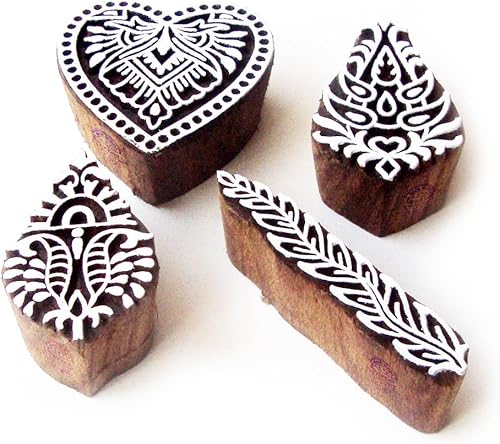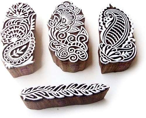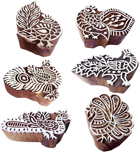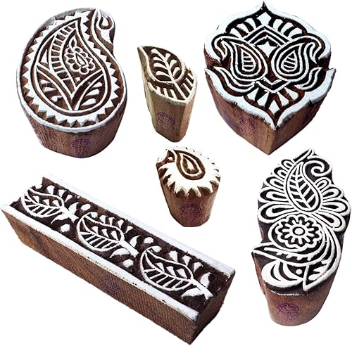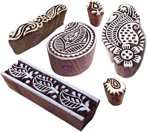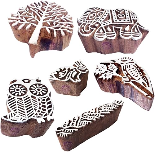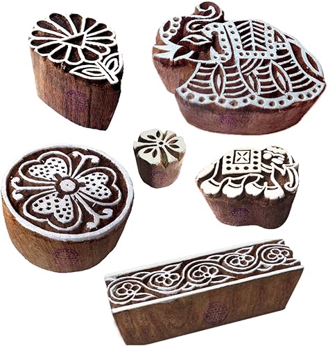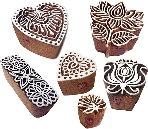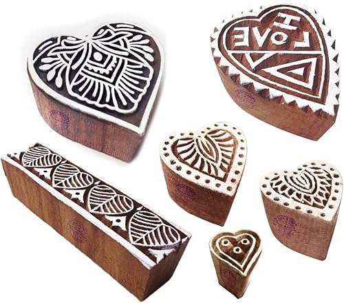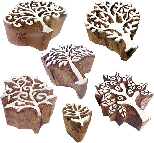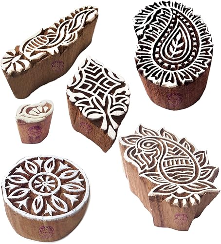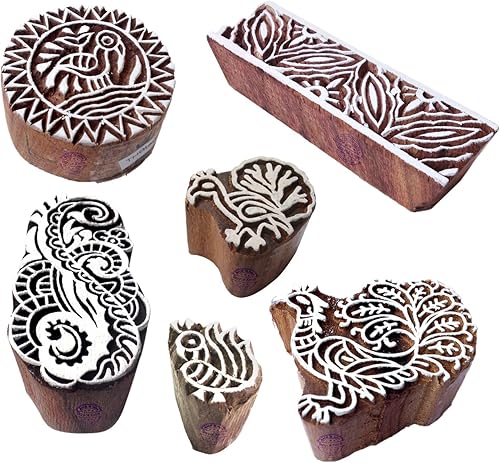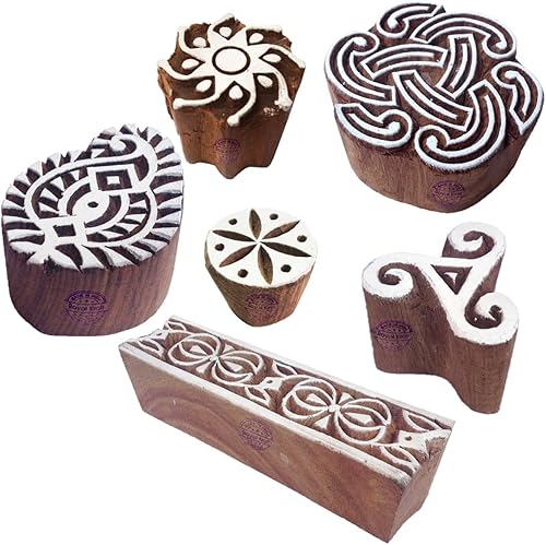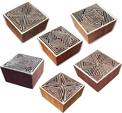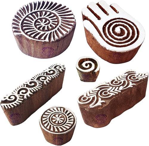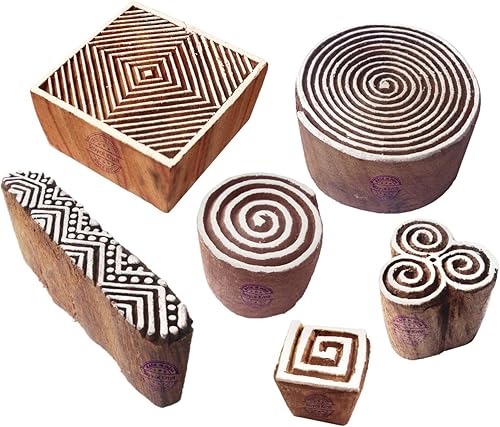 Décoratif Motif Spirale et Healer Hand Bois Impression Blocs (Set de 6)