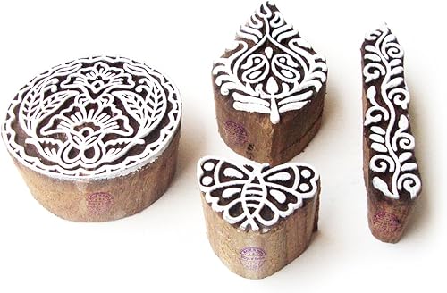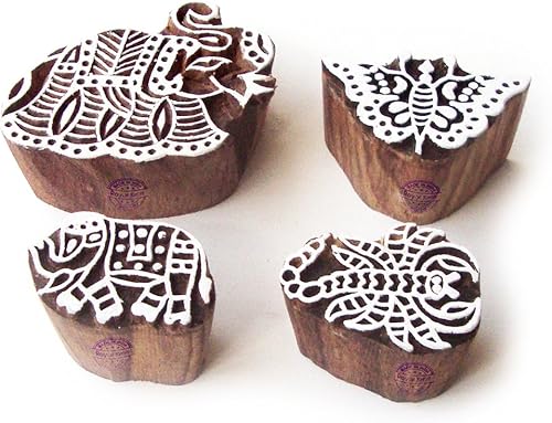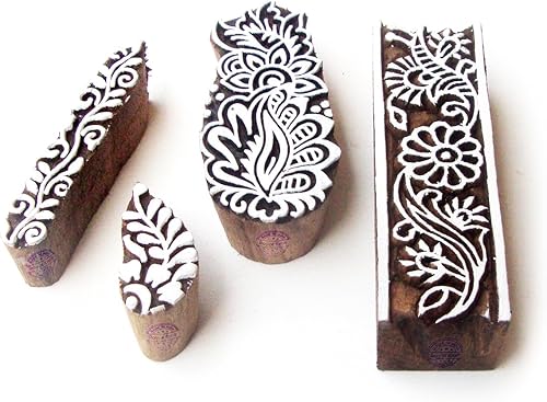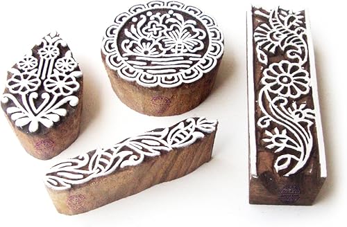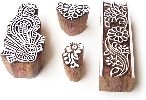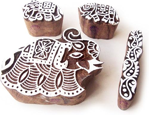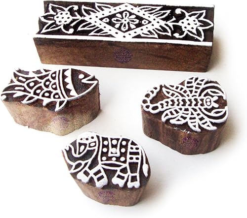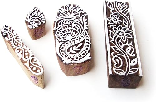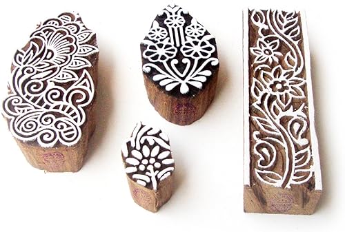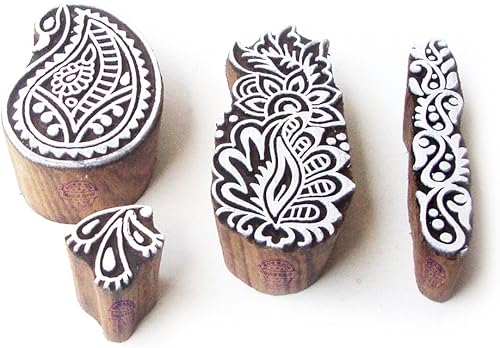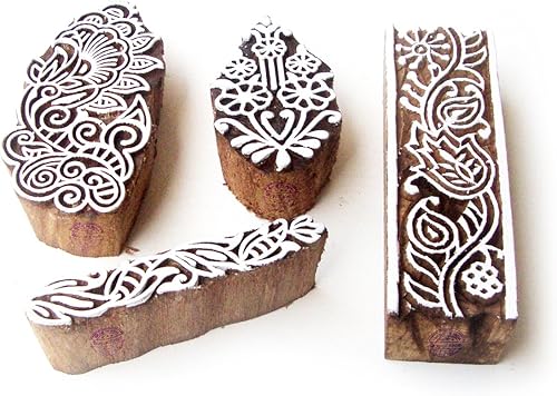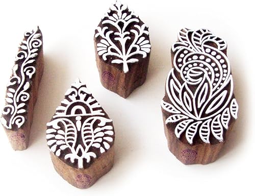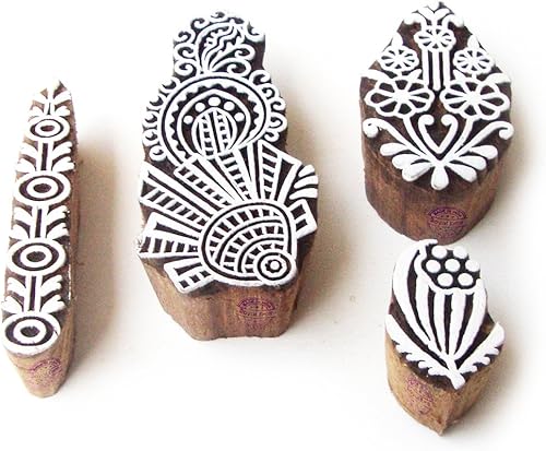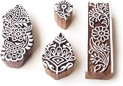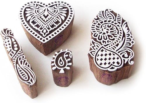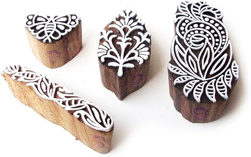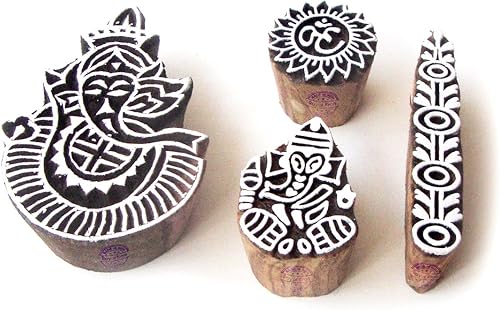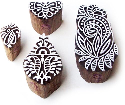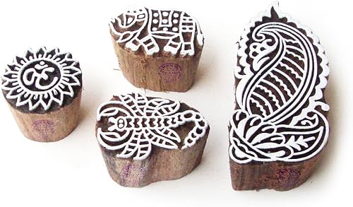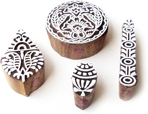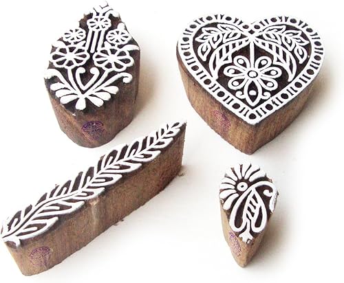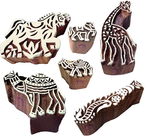 Décoratif Motif Spirale et Healer Hand Bois Impression Blocs (Set de 6)