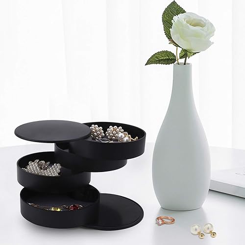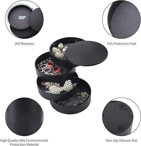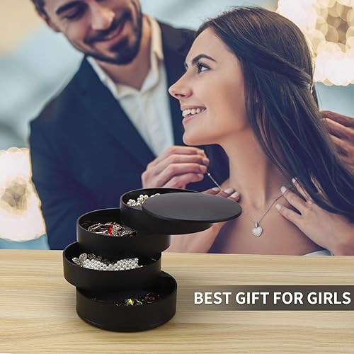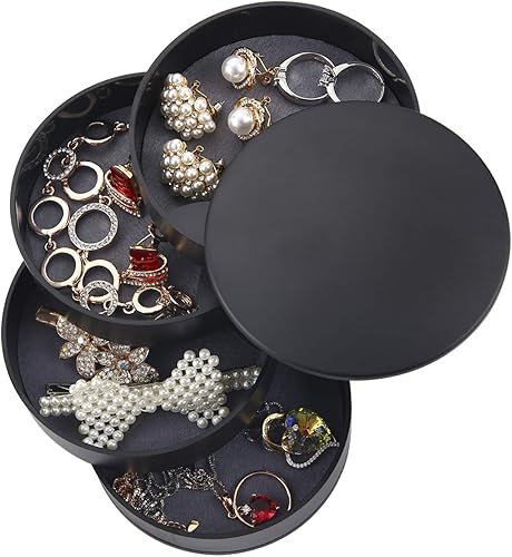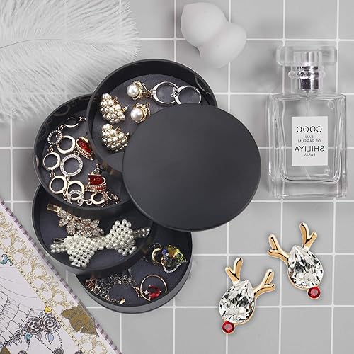 Ulikey Boîte à Bijoux Ronde, Trousse à Bijoux de Voyage de Rangement, 4 Niveaux Jewelry Stockage Cas pour Bagues Boucles d'oreille Colliers Bracelets (Noir)